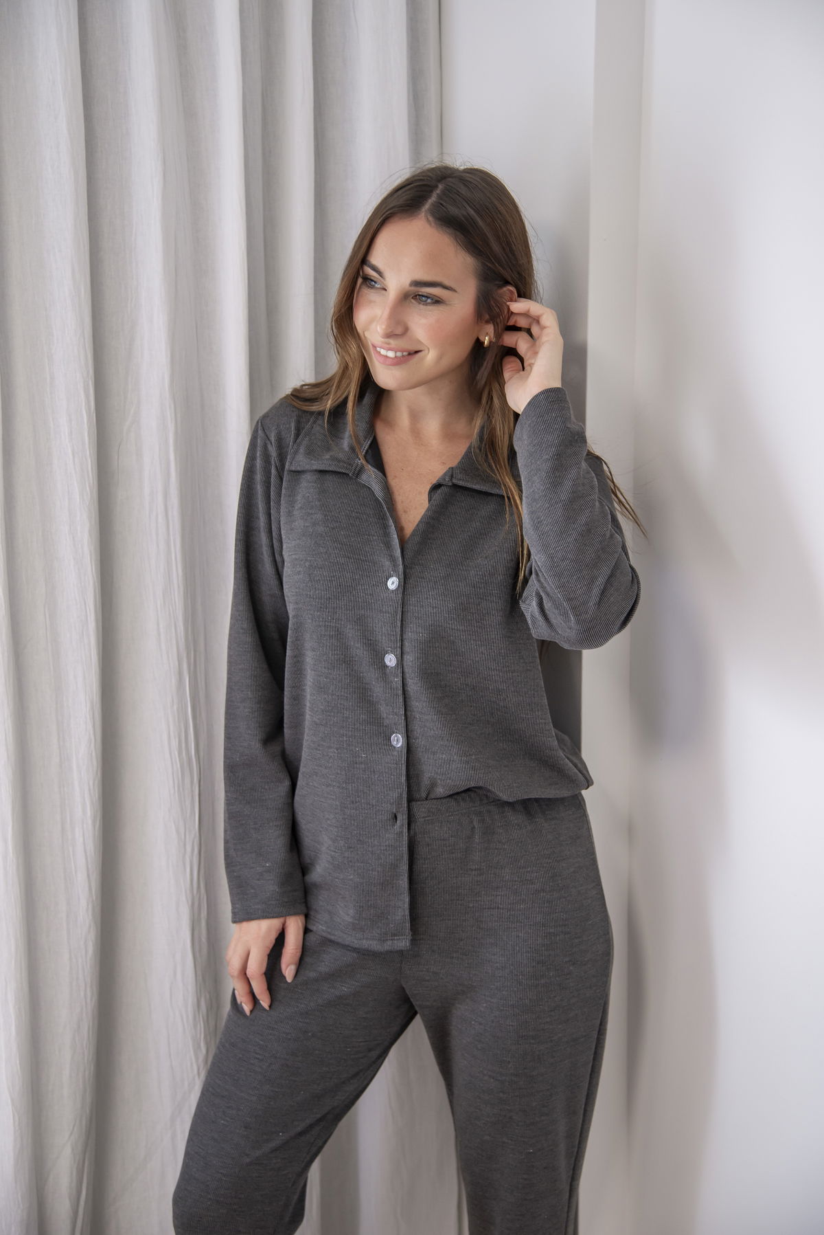 Este pijama clásico de morley es todo lo que necesitas para descansar con estilo. Su textura suave y elasticada se adapta perfectamente al cuerpo, brindando comodidad y libertad de movimiento. El diseño abotonado y el cuello camisero le dan un toque elegante, ideal tanto para dormir como para disfrutar de tus momentos de relax en casa.