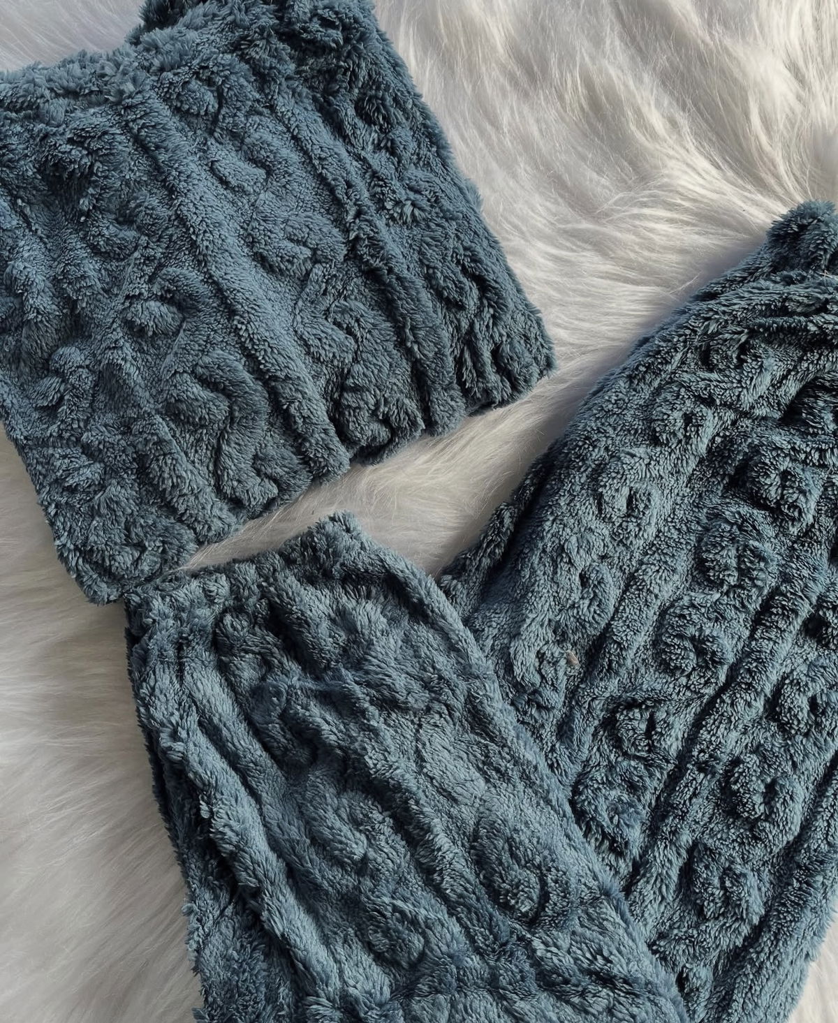 Déjate envolver por la suavidad y el abrigo de este pijama importado de tejido trenzado, perfecto para las noches frescas o para disfrutar de tus momentos de relax en casa.
